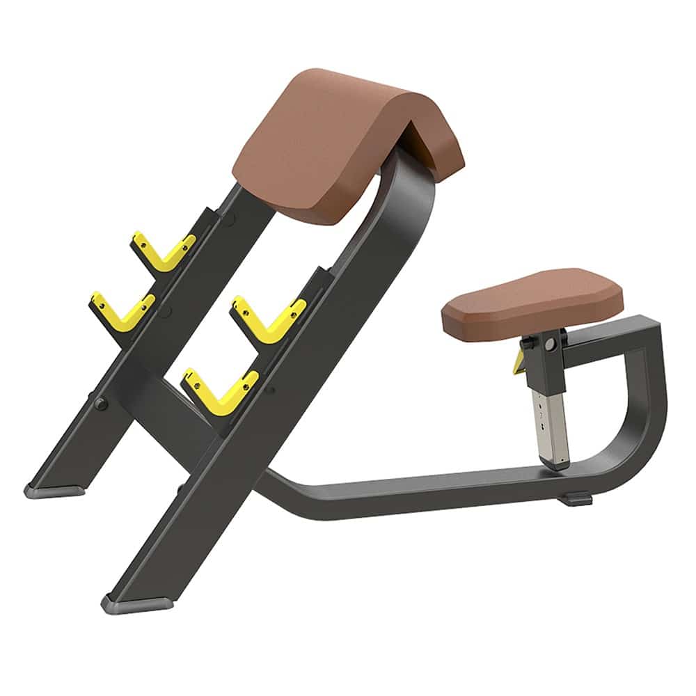 El Banco Scott o Banco Predicador es la máquina más efectiva para aislar y trabajar los bíceps de forma concentrada. Su respaldo inclinado está diseñado para mantener la posición correcta del brazo, evitando balanceos y maximizando la contracción muscular. Es ideal tanto para rutinas de hipertrofia como de tonificación de brazos, y puede usarse con barra recta, barra Z o mancuernas. Su estructura reforzada garantiza estabilidad y seguridad incluso con altas cargas.