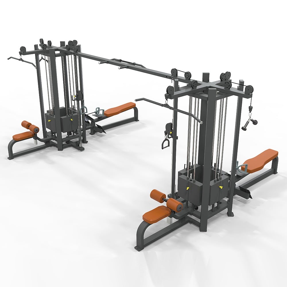 La Multiestación 8 en 1 es una máquina para gimnasio profesional diseñada para entrenamientos completos y simultáneos. Su robusta estructura permite que varios usuarios trabajen diferentes grupos musculares al mismo tiempo, incluyendo ejercicios de fuerza, hipertrofia y tonificación.