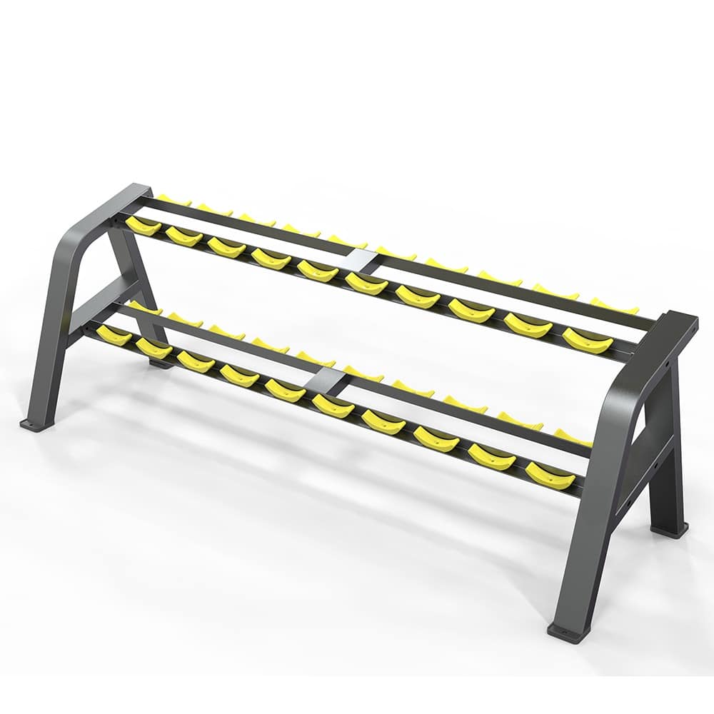 El Porta Mancuernas es ideal para guardar tus mancuernas de forma ordenada y accesible. Su diseño resistente soporta gran capacidad de peso, aportando orden y practicidad a tu gimnasio o espacio personal.