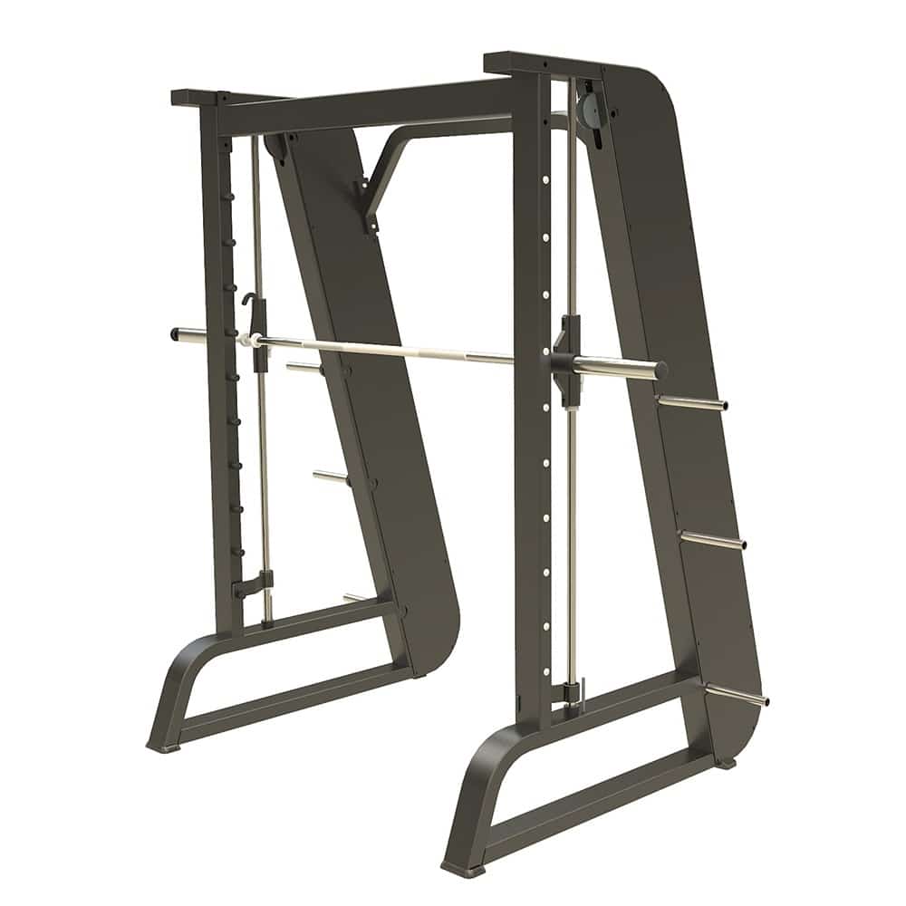La Smith es una máquina para gimnasio de fuerza guiada que permite realizar press de pecho, sentadillas, press de hombros y remo de forma segura. Su barra guiada proporciona estabilidad, ideal para entrenamientos intensivos sin necesidad de spotter.